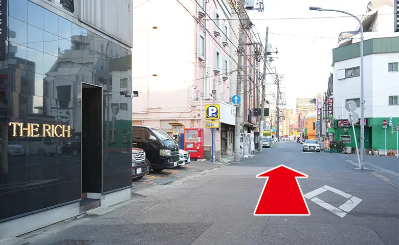 橋を渡り少し進むと左手側にグループ店リッチが見えます。