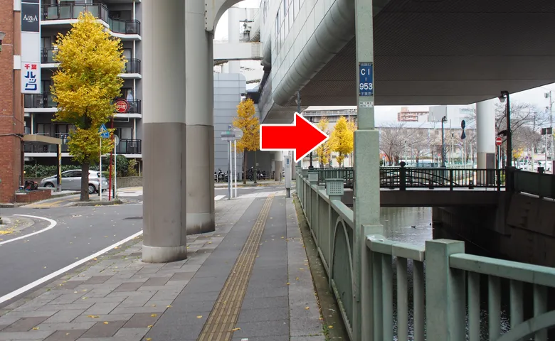 エスカレーターを降りたら左折し、道なりにすすみます。