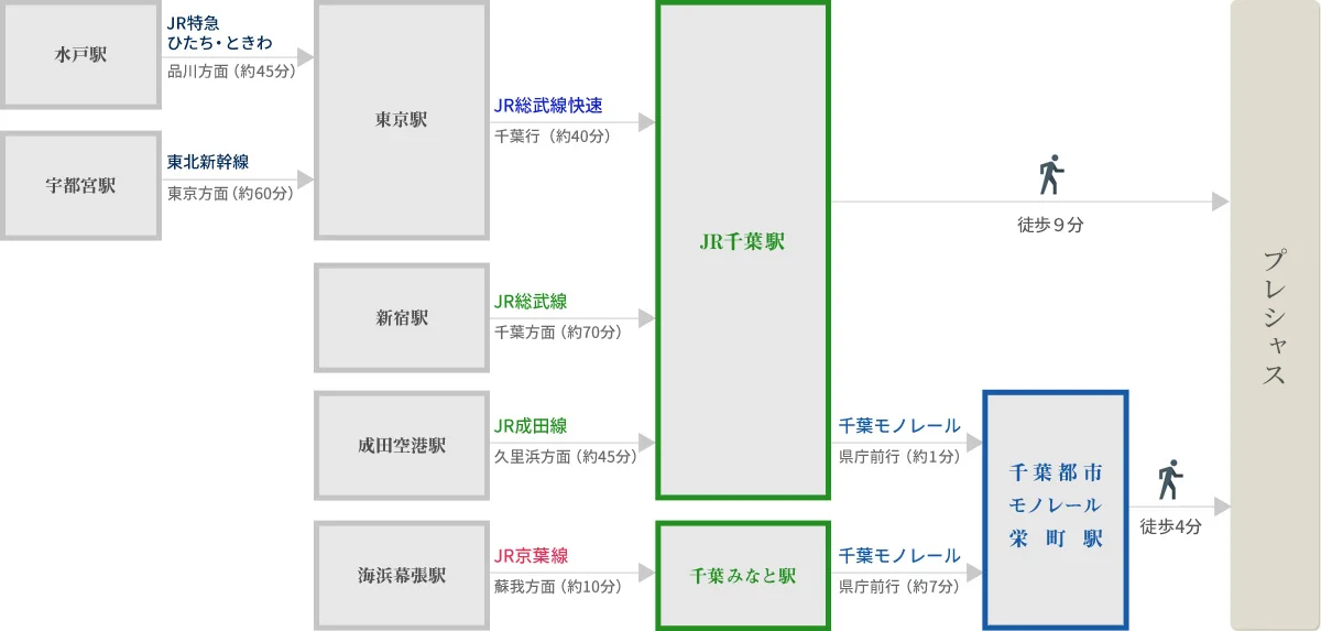 改札を出て左に進み、「JR千葉駅方面」出口を出ます。